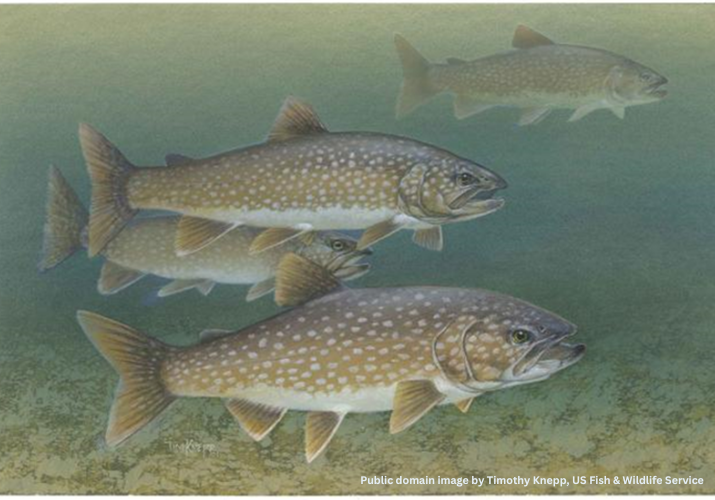 The story of lake trout in Lake Champlain is one of mystery and hope. In spring 2023, the Lake Champlain Fish and Wildlife Management Cooperative – a working group of fisheries professionals from the New York State Department of Environmental Conservation, the Vermont Fish and Wildlife Department, and U.S. Fish and Wildlife Service – announced plans to halve the annual stocking of lake trout in Lake Champlain this year. They cut back because of increases in lake trout wild recruitment, or survival past the first winter of life. This follows a trend of jumps in lake trout populations and subsequent reductions in stocking—there was a 30% reduction in trout stocking in 2022. While thousands of animal populations across taxa around the world plummet, the native lake trout of Lake Champlain are making a comeback. Why?