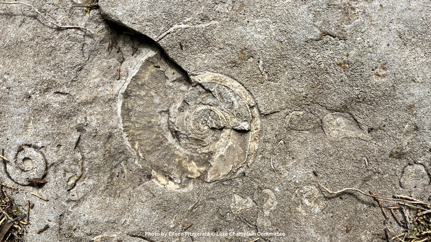 The Chazy Fossil Reef is visible on Vermont’s Isle La Motte and along portions of the rocky shorelines of northern Lake Champlain in New York, including Valcour and Garden Islands. This reef is the observable portion of the much larger Chazy Formation, which extends from Quebec to Tennessee. The layers that form the reef show the marine environment from the Ordovician Period (about 450 - 480 million years ago), a time when the current-day lands that comprise the Lake Champlain Basin were underwater and in the Southern Hemisphere, near modern-day Zimbabwe.