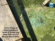 Lake Champlain Committee (LCC) cyanobacteria monitors mainly reported good conditions this week. The exceptions so far are low alerts from Monday August 21 at Philipsburg Quebec. The Quebec reports were from research sites that are monitored every two weeks so conditions may change well before the tracker gets updated with the next report. The other low alert came from Ticklenaked Pond in Ryegate in Vermont's Northeast Kingdom. There was also a report of an unusual cyanobacteria on Lake Morey in Fairlee, Vermont. Scroll down to see a picture of Rivularia spp. and learn more.