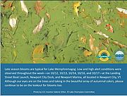 We had some great weather for leaf peeping this week but unfortunately, those moderate temperatures and sunny, calm days also helped cyanobacteria blooms flourish. High alert or mixed conditions were witnessed in Lake Champlain’s St. Albans Bay, the Inland Sea, Malletts Bay, Main Lake North, Main Lake Central and Main Lake South as well as in Lake Carmi and Lake Memphremagog. Read...