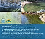 Cyanobacteria blooms were reported this week from Lake Champlain’s St. Albans Bay, Inland Sea, Main Lake North, Main Lake Central and Main Lake South as well as at Lake Carmi and Lake Memphremagog. Yesterday’s intense rain may wash cyanobacteria out or give them a fresh load of nutrients to grow. While the cooler temperatures will make conditions less hospitable for cyanobacteria, they may still pop up so please use the links and resources in this email to help you recognize, avoid and report blooms. Read...