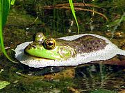 In early July gray tree frogs can still be heard calling for mates, but by the end of the month bullfrog (jug-o-rum) and green frog (like a single tong from a banjo string) calls become more prominent. Tree frogs breed earlier in the season because they utilize vernal pools for laying eggs. The advantage of vernal pools is that they hold fewer predators. The disadvantage is that the eggs must hatch and the tadpoles mature before the pools dry up. In contrast bullfrog and green frog tadpoles breed in permanent bodies of water. Their tadpoles will spend at least one winter in the water before maturing. Read...