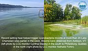 Read...Mixed conditions were reported by Lake Champlain Committee (LCC) monitors yet again on Lake Champlain and inland lakes. Cyanobacteria blooms persisted in St. Albans Bay and parts of Missisquoi Bay and Main Lake North along with Lake Carmi. Low alert conditions were reported at Lake Memphremagog and Lake Morey.