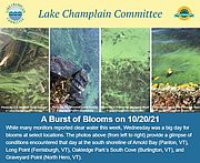 Unfortunately, this was a big week for blooms—reports of cyanobacteria were chronicled at all Lake Champlain sections except the South Lake and Malletts Bay. Blooms expanded in many areas of Lake Memphremagog and were reported on Lake Carmi and Lake Iroquois. You can get a sense of the impact of a bloom by watching this video taken on 10/6/21 by Missisquoi National Wildlife Refuge Manager Ken Sturm. Ken and his team witnessed an extensive swath of dense cyanobacteria in Missisquoi Bay during a 20-minute boat ride from the east delta all the way around to Long Marsh Bay. Read...