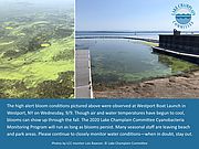While the cyanobacteria tracker map was dominated by green dots last week, too many red dots evidencing blooms are showing as we head into Labor Day weekend. While good conditions were observed at Lake Champlain’s Malletts Bay, Main Lake South, and South Lake and at numerous inland waterways, cyanobacteria blooms showed up in Missisquoi Bay, St. Albans Bay, the Inland Sea, Main Lake North and Main Lake Central on Lake Champlain as well as at Lake Carmi, Lake Morey and Shelburne Pond. Blooms can pop up or persist well into the fall so please continue to check conditions carefully whenever recreating near waterways. Read...