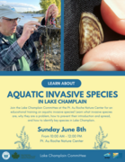 Join the Lake Champlain Committee at the Pt. Au Roche Nature Center on Sunday, June 8 from 10 AM - 12 PM for an educational training on aquatic invasive species! Learn what invasive species are, why they are a problem, how to prevent their introduction and spread, and how to identify key species in Lake Champlain. Read...