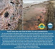 We hope you’ve been enjoying the cooler temperatures and lower humidity this week. Here are results from our tenth week of the Lake Champlain Committee (LCC) cyanobacteria monitoring program. You’ll find resources and links to help you identify, report and avoid cyanobacteria. We’ve also included pictures of some of the conditions observed this week along with photos of a stick test you can use to help you differentiate cyanobacteria from non-toxin producing green algae. Please continue to share these resources with others to help educate people on water issues.