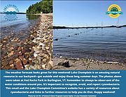 Alert level conditions were reported from several Lake Champlain locations and inland lakes this week including Lake Champlain’s inland sea, St. Albans and Missisquoi Bays and at Indian Brook Reservoir, Lake Carmi and Shelburne Pond. Scattered storms are predicted for the weekend before a rise in temperatures next week so pease be on the lookout for blooms and avoid contact with anything that looks suspicious. Read...