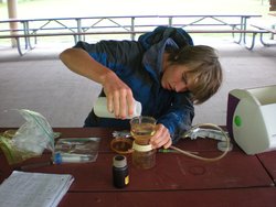 An LCC blue green algae monitor taking a sample at Burlington’s North Beach. Photo by Lori Fisher (http://www.lakechamplaincommittee.org/lcc-at-work/algae-in-lake/).