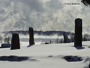 Steam rises from the lake during a zero-degree morning, looking toward Stave Island. Photo by Gary Kjelleren.