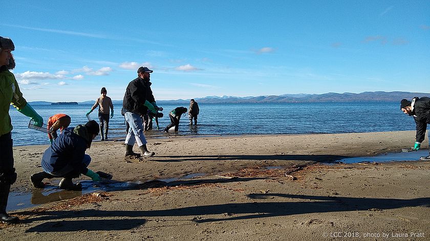 It was a search for the Asian clam, an invasive species on the verge of entering Lake Champlain. In an effort to detect invaders early, the Lake Champlain Committee teamed up with Magic Hat Brewery and Arrowwood Environmental in October 2018 to survey Burlington beaches. Using their sieves, volunteers combed the shoreline of Leddy Beach, North Beach, and Blanchard Beach for the invasive mollusk. Luckily, for this year at least, they didn’t find them.