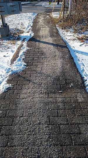 What not to do: salt doesn’t need to be a visible layer, or “crunch” underfoot, for a sidewalk to be safe. Photo by Laura Pratt.