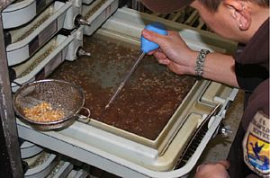 Tray of Landlocked Atlantic Salmon eggs which will become the brood stock to help restore future populations in Lake Champlain. Photo from White River National Fish Hatchery.