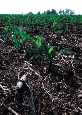 Corn growing in a field that has not been tilled. Photo from NRCS.