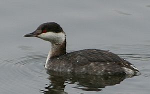 Horned grebe in winter plumage. Image from Wikipedia.