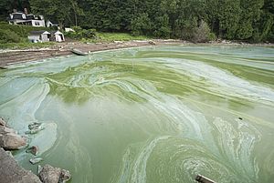 Blue-green algae blooms can produce toxins, but there are no clear drinking water standards for them. Photo by Rob Galbraith.