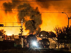 Rail transport of explosive Bakken crude oil through the North Country has increased dramatically due to tremendous growth in outputs from Canada and the Bakken oil fields of North Dakota. Rail incidents in Quebec, Alberta, Alabama, North Dakota, New Brunswick, and Virginia have led to fires and explosions. Last year's derailment at Lac-Mégantic, Quebec killed 47 people and devastated the community. Don’t let the next accident happen in our backyards.