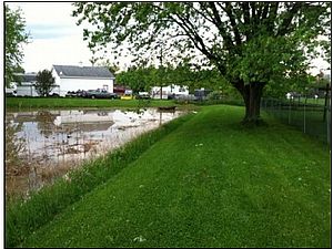 Developed land is a significant source of phosphorus loading to Lake Champlain. Measures to reduce loading include revisions to the Vermont stormwater manual, improved management of roads and construction sites, and increased use of low-impact development practices. But to really get a handle on phosphorus-loading from developed land we will also have to address areas that have already been built. To that end, LCC recently completed a project to design a retrofit for a stormwater pond in Vergennes. The pond in question was not designed to remove phosphorus from stormwater. It was originally designed in 1987 to ease potential flooding from large storms as per the regulations of the time, but it can be retrofitted to also provide water quality treatment.