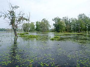 The floodplain forests and open marshes of the Sandbar wetlands, in Milton and Colchester, provide exceptional flood storage, water quality protection and habitat for fish and wildlife. Photo by VT Agency of Natural Resources.