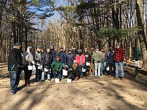Volunteers like this great crew from Magic Hat that helped us scoop poop from shoreside trails are the heart and soul of LCC. Become one of them and feel the love. Photo by Lori Fisher.