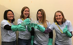 LCC staff give a cheer to our cyanobacteria volunteers! Photo by Jen Francoeur