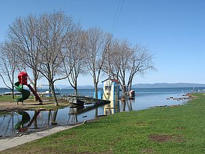 Snowmelt-filled rivers and streams lead to rising lake levels this time of year. Additionally, plants can’t readily absorb any rain that falls before the flowers blossom and trees leaf-out so it moves fairly rapidly to the streams. On average, the lake’s level climbs almost three feet between the beginning of March and early May, peaking at about 99 feet above sea level. As of March 26, 2009 the lake stood near 97.5 feet.