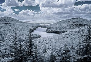 Groton State Forest sits astride the boundary of the Lake Champlain and Connecticut River drainage basins in the towns of Groton and Peacham, Vermont. Photo by Worlwide Elevation Finder.