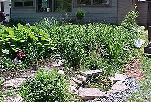 Rain gardens reduce runoff by allowing stormwater to soak into the ground rather than flowing into storm drains and surface waters. Photo courtesy of Wisconsin Dept of Natural Resources.