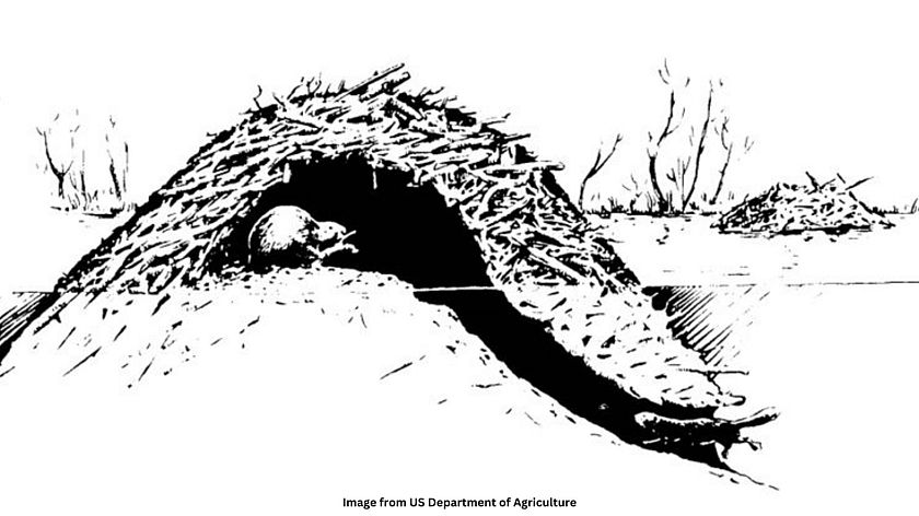 Typically, five to six beavers will reside in the lodge during winter, including two parents, one to three yearlings, and one to three kits born earlier in the year. This group helps generate body heat, keeping the lodge much warmer than the outside air. For example, one lodge studied in Ontario maintained a temperature of 32°F while the outside temperatures ranged from 19°F to -6°F.