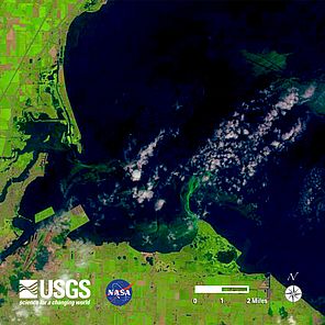 Four government agencies have teamed together to develop tools that would allow tracking of freshwater algae blooms using satellite images. The $3.6 million dollar research effort will involve NOAA, NASA, EPA, and the US Geologic Service. The agencies hope to develop early warning and tracking capability that can improve response to harmful algae blooms. The annual cost of U.S. freshwater degraded by harmful algal blooms is estimated to be $64 million in additional drinking water treatment, loss of recreational water usage, and decline in waterfront real estate values. In August 2014, local officials in Toledo, Ohio, banned the use of drinking water supplied to more than 400,000 residents after it had been contaminated by an algal bloom in Lake Erie.