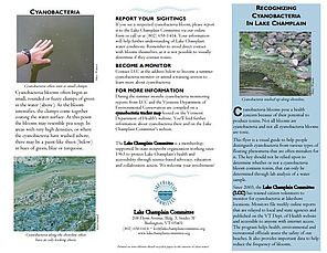 LCC has produced a visual guide to various types of floating phenomena on Lake Champlain. It will help you distinguish cyanobacteria from other common accumulations of plant matter. The key should not be relied upon to determine whether or not a blue-green algae bloom contains toxins.