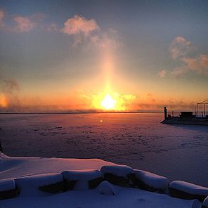 While the winter solstice marks the beginning of the astronomical winter (which concerns the Earth’s position relative to the sun), it is closer to mid-winter by meteorological measurements. Meteorology is based on the temperature cycle, and groups seasons into three-month segments – the northern hemisphere’s winter being December, January, and February. So, why is the longest night of the year not the coldest night? It’s due to something called seasonal lag. The Earth’s thermal mass (primarily its oceans) retains the summer heat, and releases it into the atmosphere as it slowly cools to match the air. This process can be seen on a smaller scale in Lake Champlain, which is often shrouded in steam fog as it sheds its heat throughout the autumn and early winter.