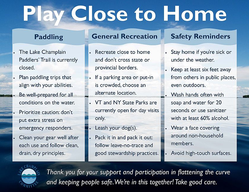 Spring is a great time to recreate—blue skies, vegetation glowing green, woodland flowers bursting forth, birds in flight and song—all call us to get outside! With the recent easing of COVID-19 related restrictions on travel, we are all anxious to go further afield to exercise our bodies and lift our spirits outdoors. Please take precautions, Play Close to Home and remember that water is still deadly cold. Thank you for following these tips to help flatten the curve and keep people safe. We're in this together! Be well, everyone.